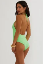 Shop Kristy One Piece Lime Green Terry featuring soft terry fabric, flattering silhouette, and vibrant green one piece swimsuit design.